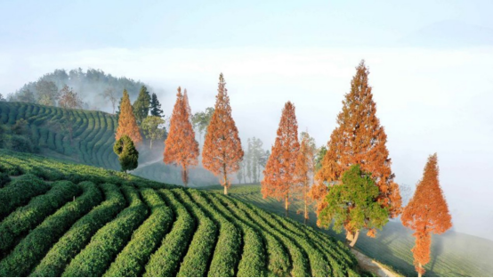 On the 19th, a tea garden in Baokang County, Xiangyang City, Hubei Province was photographed by a drone.